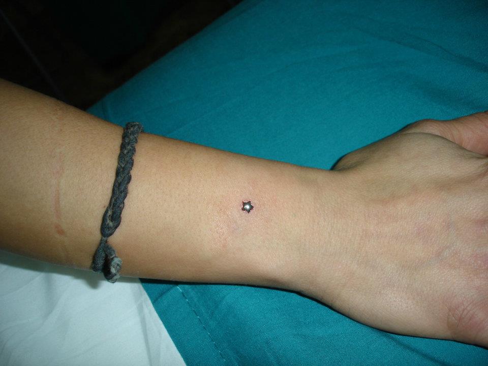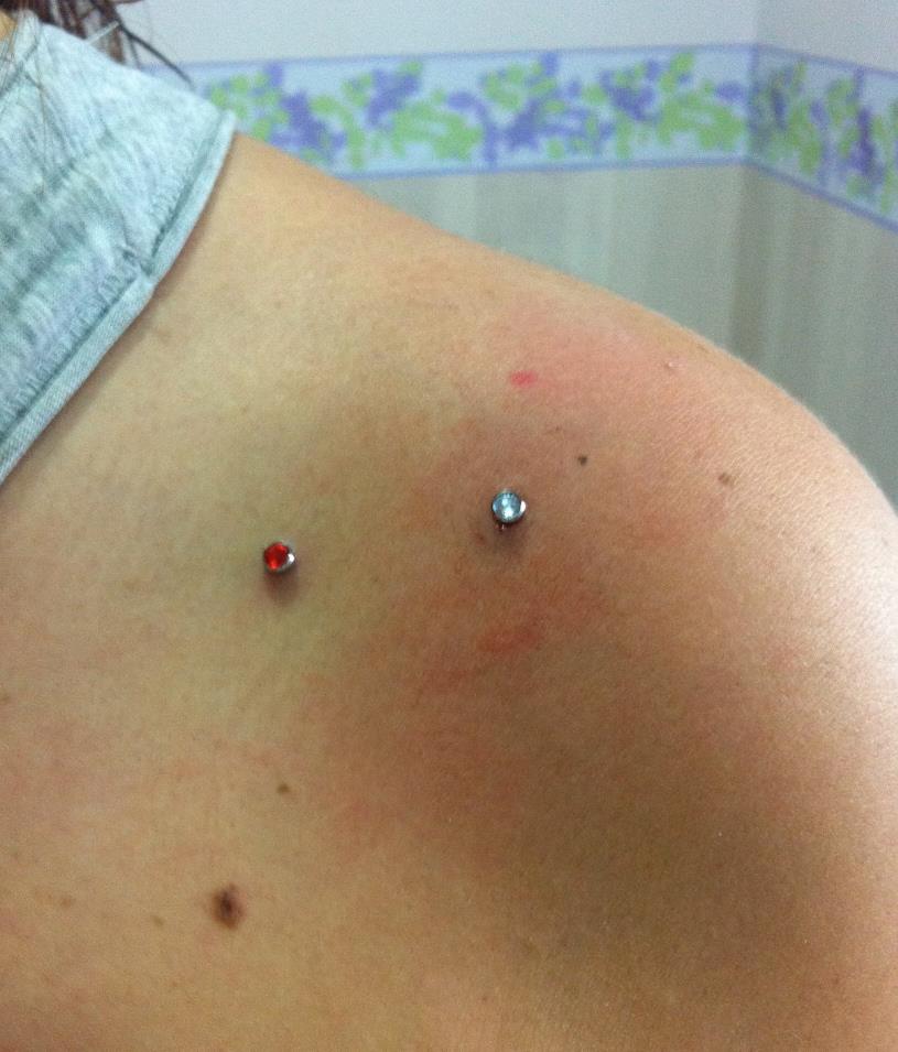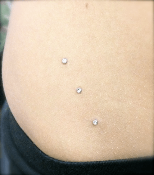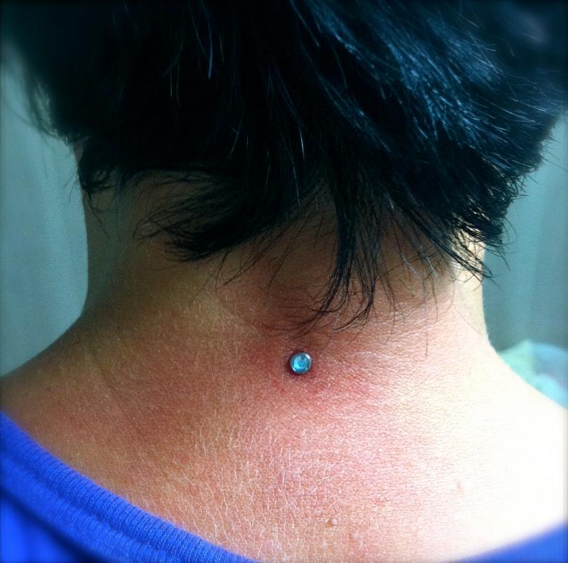El microdermal es un implante de titanio que consta de 2 partes: una pieza interna de unos 4mm que queda por debajo de la piel, y una pieza externa que puede variar: brillantes, estrellas, placas o lunares.